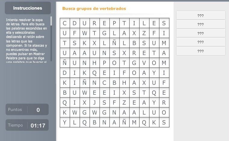 - Sopa de letras: Encuentra los grupos de vertebrados